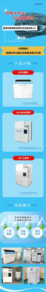 目前,優(yōu)浦達生產(chǎn)的UP系列實驗室廢水處理系統(tǒng)主要有:UPFS系列、UP-NPMF系列、UPYL系列等一體化實驗室廢水處理系統(tǒng)。自動化程度高、占地面積小、操作管理簡便且無需專人值守,并且廣泛適用于高等院校、科研院所、環(huán)境檢測、疾控中心、石油化工、醫(yī)療機構(gòu)、企業(yè)等行業(yè)實驗室、化驗室廢水處理。